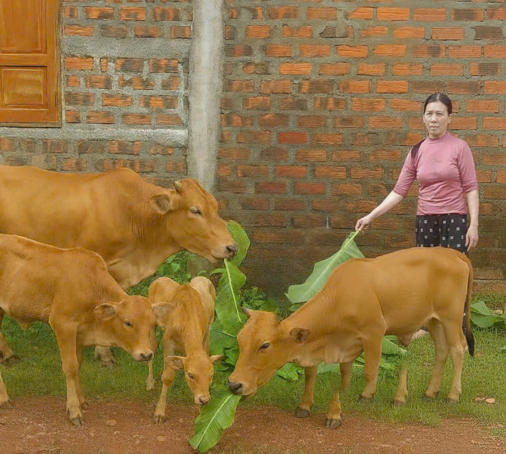 Sau những thành công bước đầu, Chị Thoa mạnh dạn vay thêm từ Quỹ với các món vay lớn hơn để mở rộng quy mô sản xuất. Chị xây thêm chuồng trại, nuôi bò, đào ao thả cá, hình thành mô hình chăn nuôi tổng hợp đa dạng. Từ chỗ chỉ là thử nghiệm nhỏ bé, trang trại của Chị dần trở thành hình mẫu kinh tế tiêu biểu cho cả xã noi theo.