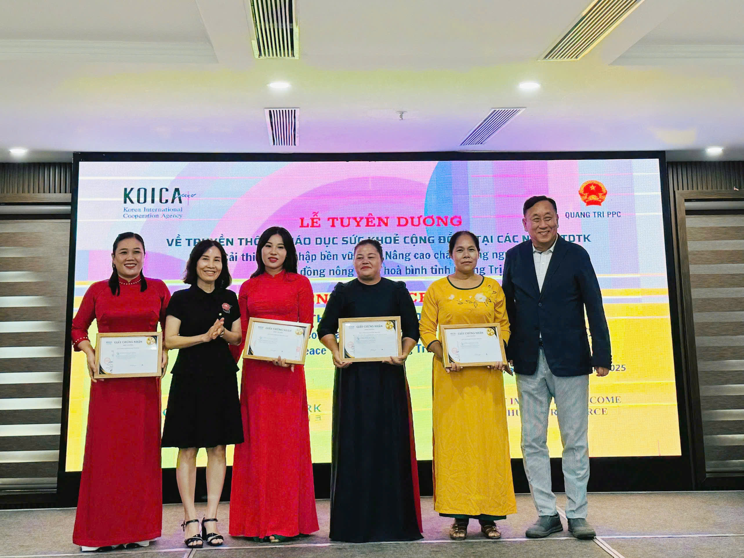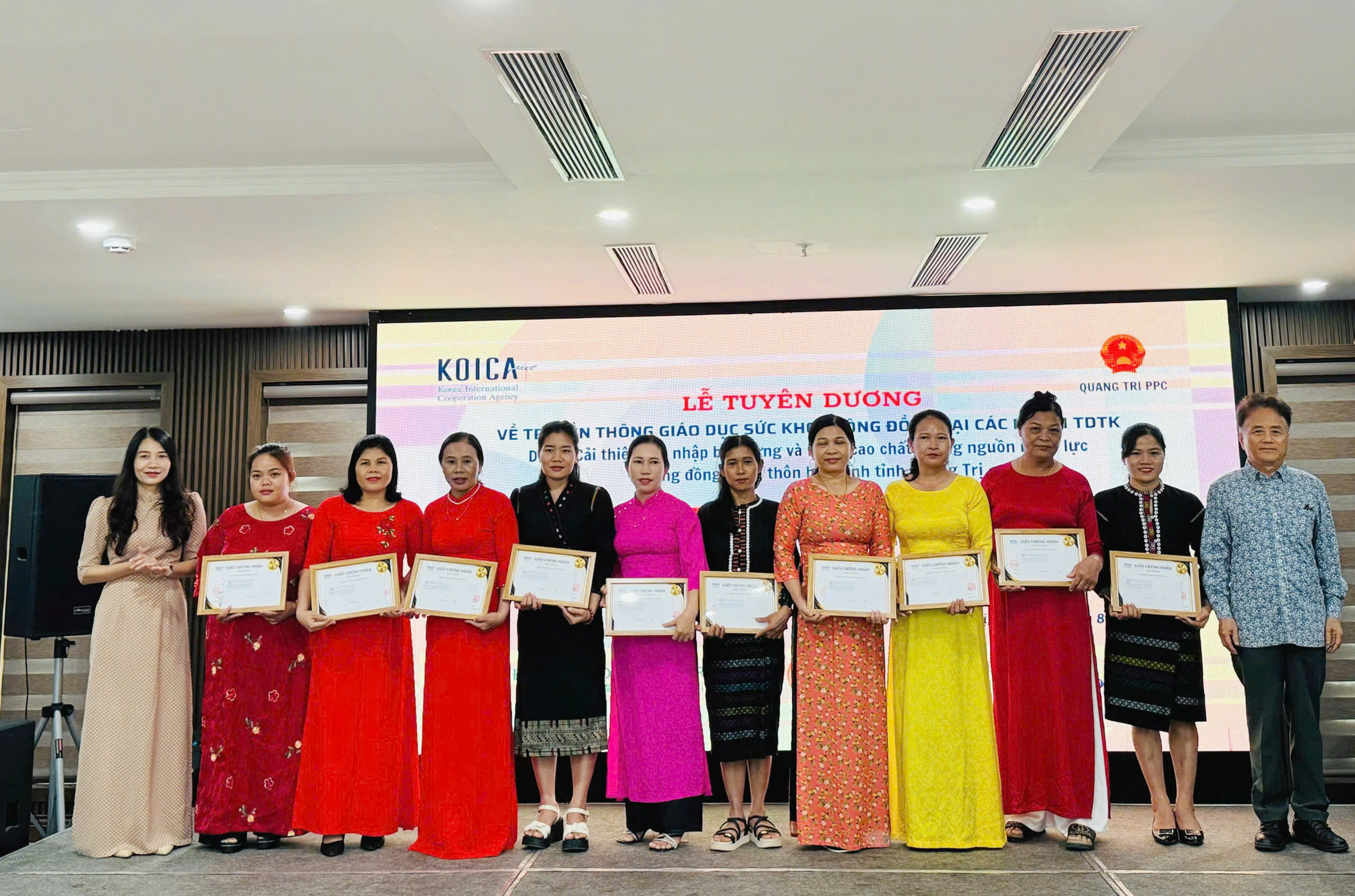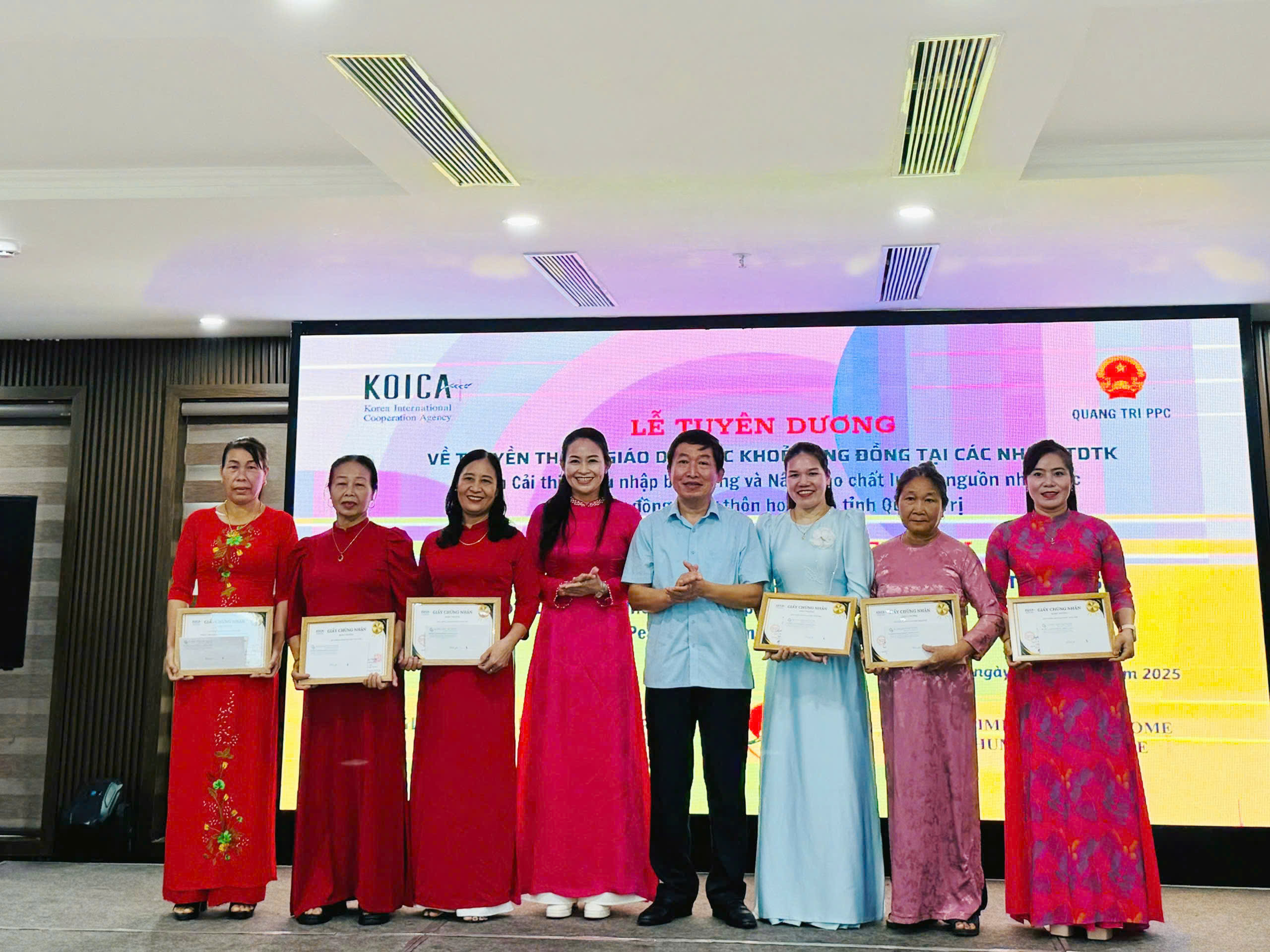 Ngày 14/8/2025, Quỹ Hỗ trợ Phụ nữ Phát triển tỉnh Quảng Trị phối hợp với Văn phòng Tư vấn Quản lý Dự án (PMC) và Ban Quản lý Dự án (PMU) tổ chức Lễ tuyên dương 20 nhóm Tín dụng tiết kiệm (TDTK) có thành tích xuất sắc trong công tác truyền thông giáo dục sức khỏe cộng đồng. Sự kiện diễn ra trong khuôn khổ Dự án Cải thiện thu nhập bền vững và nâng cao chất lượng nguồn nhân lực vì cộng đồng nông thôn hòa bình tỉnh Quảng Trị, nhằm ghi nhận, tôn vinh và khích lệ những tập thể tiêu biểu đã có đóng góp thiết thực trong việc nâng cao nhận thức và kỹ năng chăm sóc sức khỏe cho người dân.