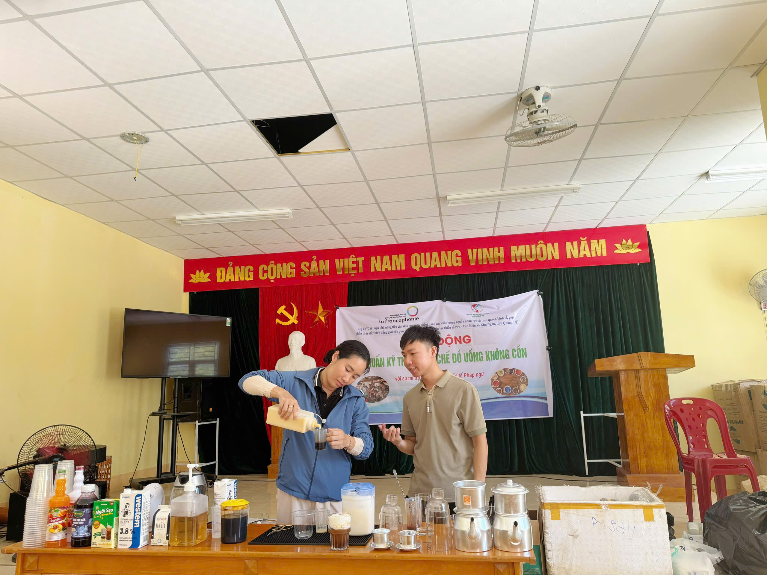 Nhằm mục đích trang bị kiến thức, nâng cao kỹ thuật chế biến, đồng thời hỗ trợ phát triển mô hình kinh doanh nhỏ để cải thiện thu nhập và nâng cao chất lượng cuộc sống, góp phần thực hiện công cộc bình đẳng giới tại địa phương, Ban quản lý Dự án Pháp ngữ thuộc Quỹ Hỗ trợ phụ nữ phát triển tỉnh Quảng Trị đã tổ chức khóa tập huấn pha chế đồ uống không cồn cho 30 phụ nữ với đa số là phụ nữ Bru - Vân Kiều ở xã Kim Ngân, tỉnh Quảng Trị.
